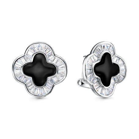 Серьги из серебра 925 пробы с фианитами, ониксом и эмалью