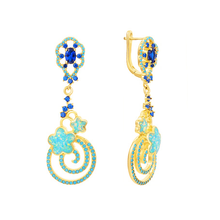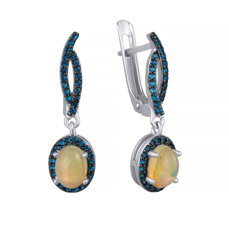 Серьги из серебра 925 пробы с опалами синтетическими и фианитами