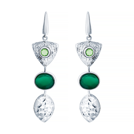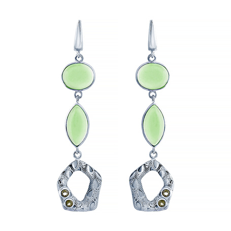 Серьги из серебра 925 пробы с пренитами и халцедонами