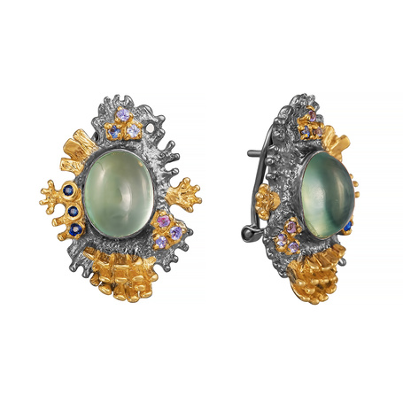 Серьги из серебра 925 пробы с пренитами, сапфирами и танзанитами