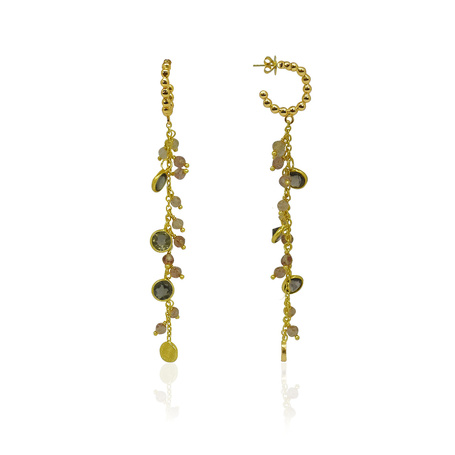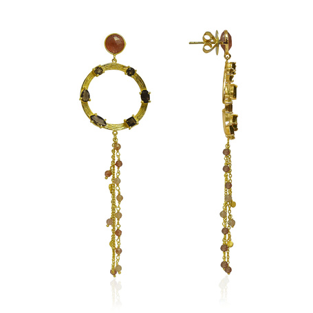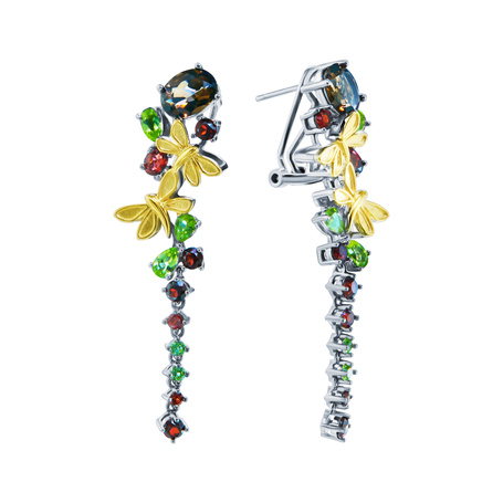 Серьги из серебра 925 пробы с раухтопазами, перидотами и гранатами