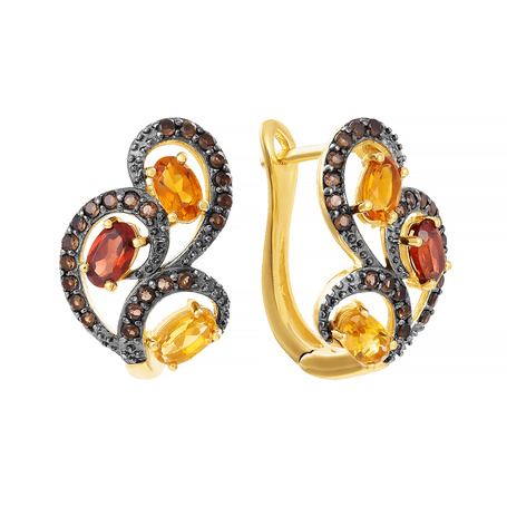 Серьги из серебра 925 пробы с цитринами, гранатами и раухтопазами