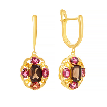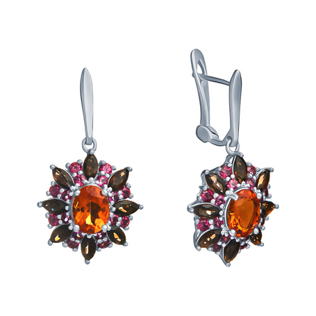 Серьги из серебра 925 пробы с раухтопазами, родолитами и цитринами
