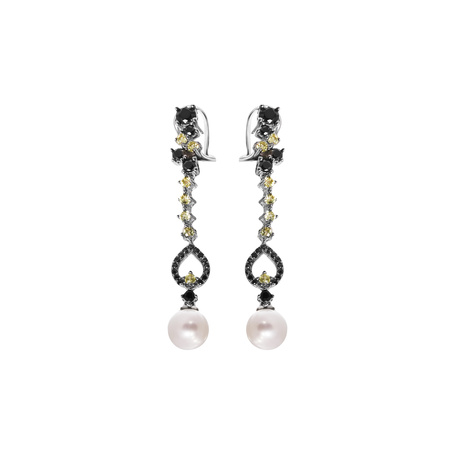 Серьги из серебра 925 пробы с раухтопазами, шпинелью и жемчугами