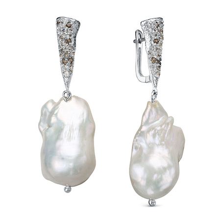 Серьги из серебра 925 пробы с топазами, раухтопазами и барочным жемчугом