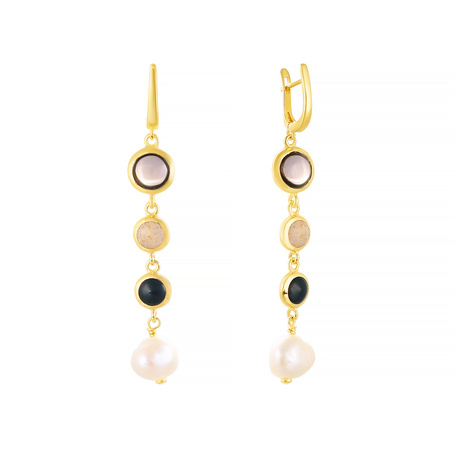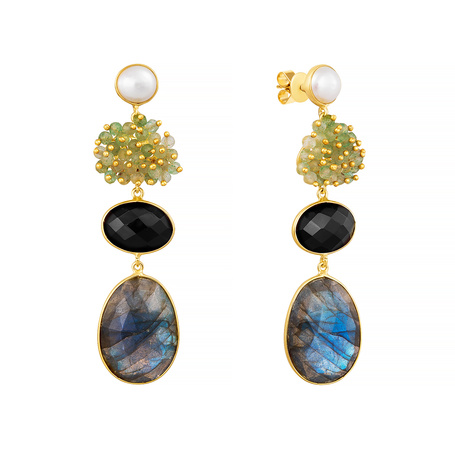 Серьги из серебра 925 пробы с лабрадоритами, раухтопазами, кварцем, ониксом и жемчугами