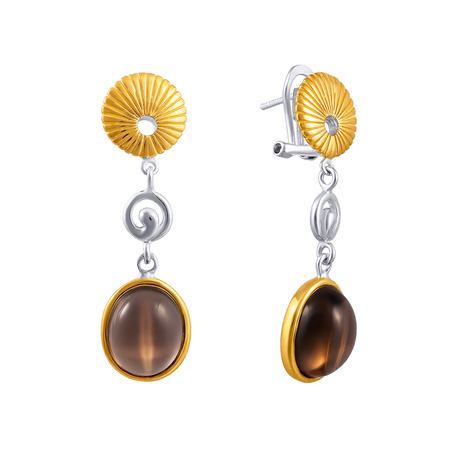 Серьги из серебра 925 пробы с кварцем и раухтопазами