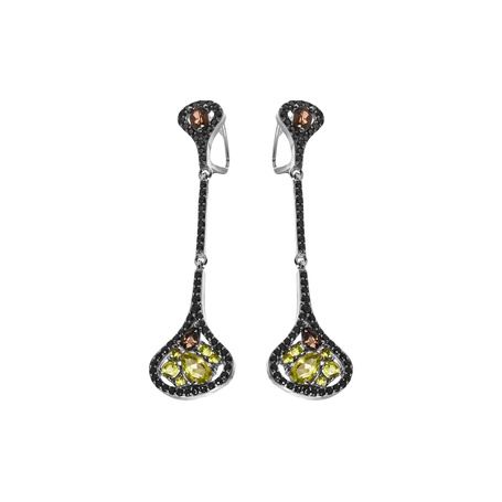 Серьги из серебра 925 пробы с раухтопазами, перидотами и шпинелью