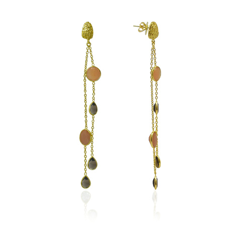 Серьги из серебра 925 пробы с лунным камнем и раухтопазами