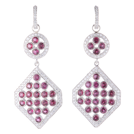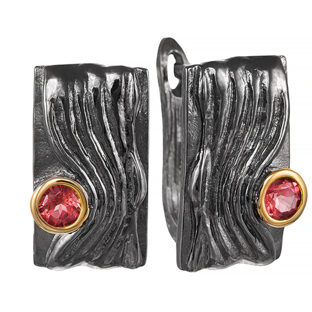 Серьги из серебра 925 пробы с корундами, родолитами, шпинелью и фианитами