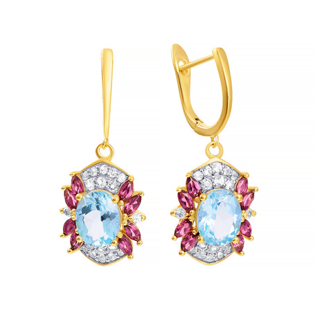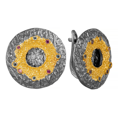 Серьги из серебра 925 пробы с топазами, аметистами, родолитами, цитринами, хромдиопсидом, гранатами и кварцем