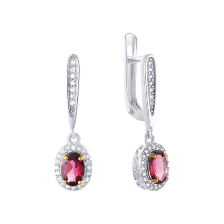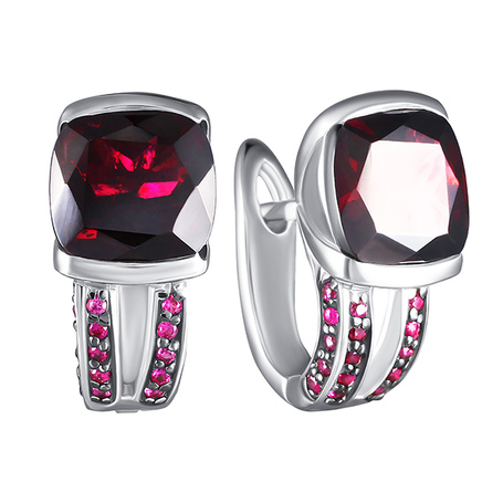 Серьги из серебра 925 пробы с родолитами и фианитами