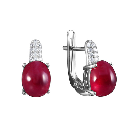 Серьги из серебра 925 пробы с фианитами и рубинами синтетическими