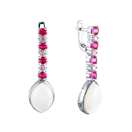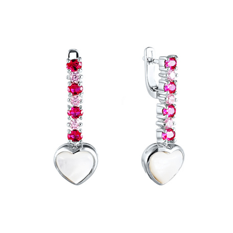 Серьги из серебра 925 пробы с перламутром, рубинами синтетическими и фианитами