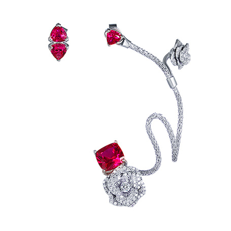 Асимметричные серьги из серебра 925 пробы с рубинами синтетическими и фианитами