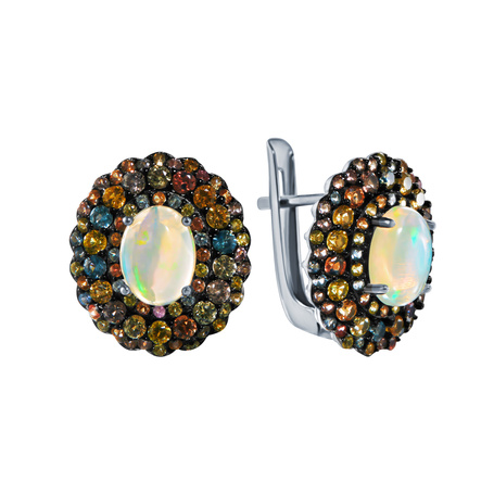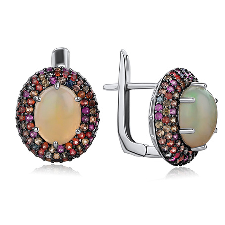 Серьги из серебра 925 пробы с опалами и сапфирами
