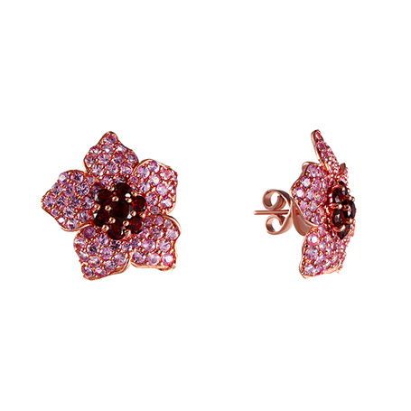 Серьги из серебра 925 пробы с рубинами, сапфирами и родолитами