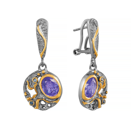 Серьги из серебра 925 пробы с сапфирами, танзанитами и топазами