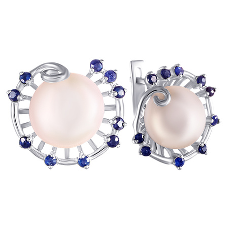 Серьги из серебра 925 пробы с сапфирами и жемчугами