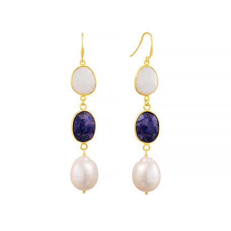 Серьги из серебра 925 пробы с лабрадоритами, содалитами и жемчугами