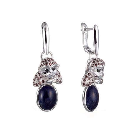 Серьги из серебра 925 пробы с содалитами и фианитами