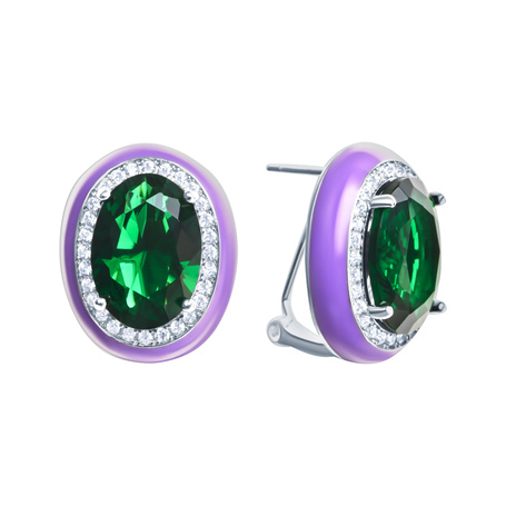 Серьги из серебра 925 пробы с фианитами, ювелирным стеклом и эмалью