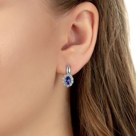 Серьги из серебра 925 пробы с танзанитами и фианитами