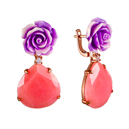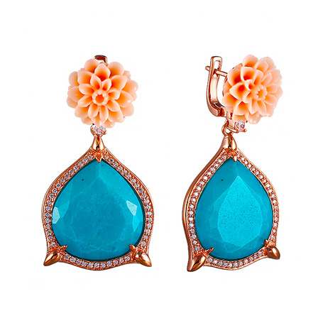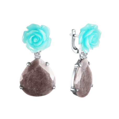 Серьги из серебра 925 пробы с халцедонами, аквамаринами и жадеитом