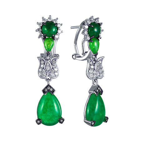 Серьги из серебра 925 пробы с жадеитом и фианитами