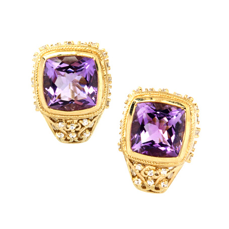 Серьги из серебра 925 пробы с аметистами и фианитами