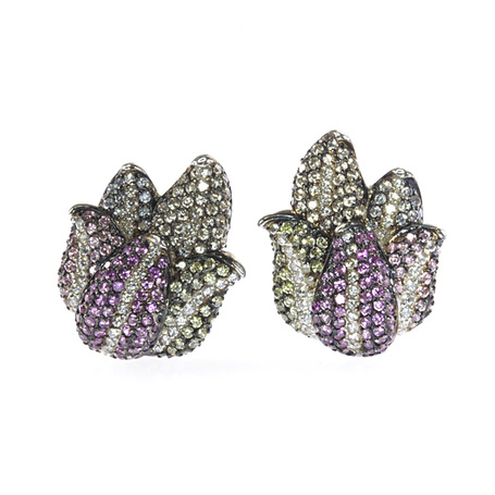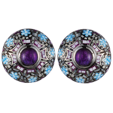 Серьги из серебра 925 пробы с аметистами, перламутром и эмалью