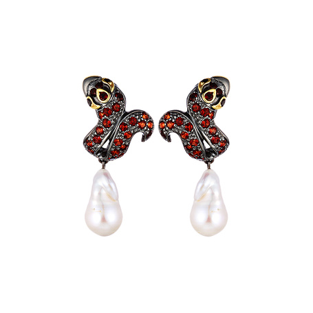 Серьги из серебра 925 пробы с гранатами и жемчугами