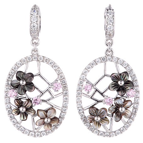 Серьги из серебра 925 пробы с перламутром и фианитами
