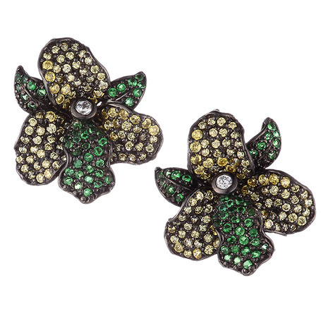 Серьги из серебра 925 пробы с жемчугами, кварцем и авантюринами синтетическими